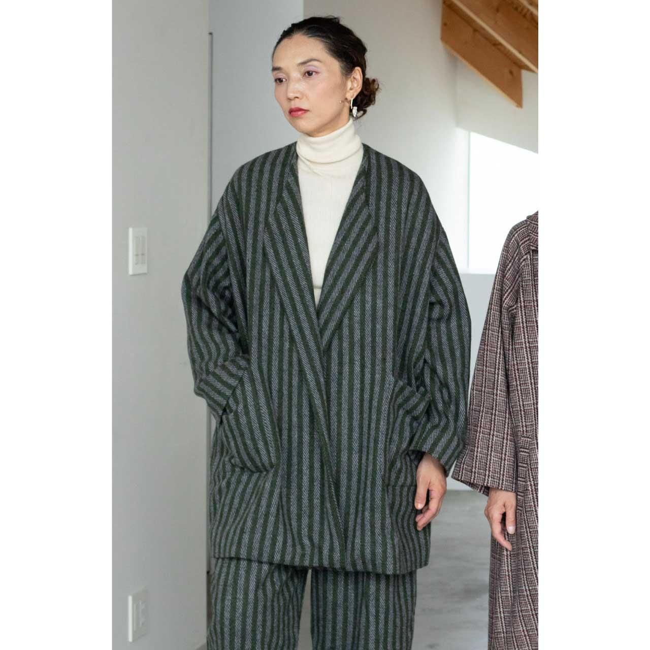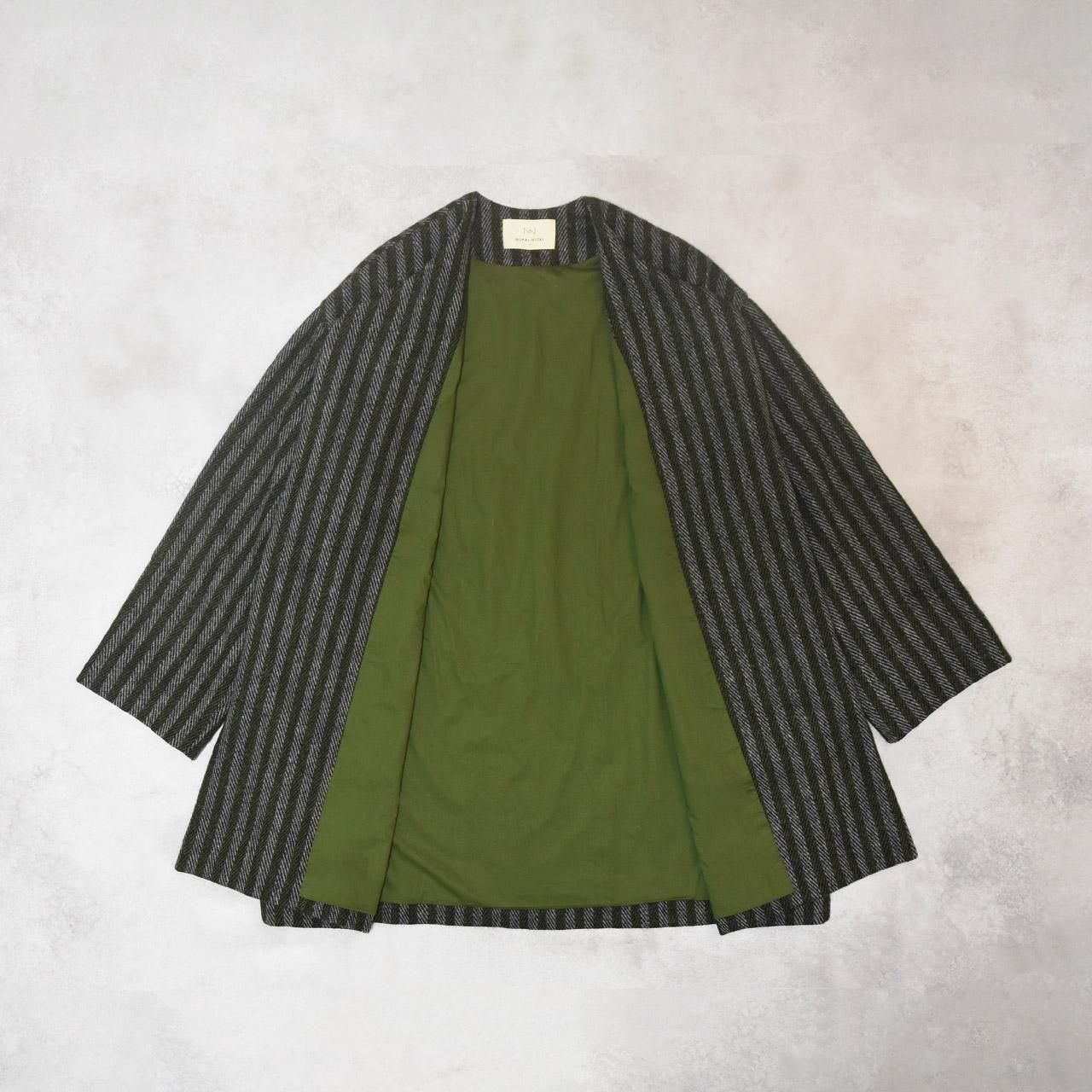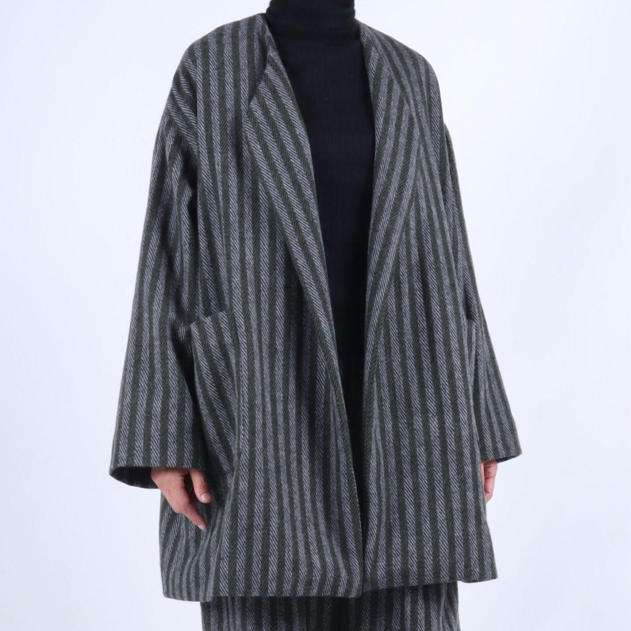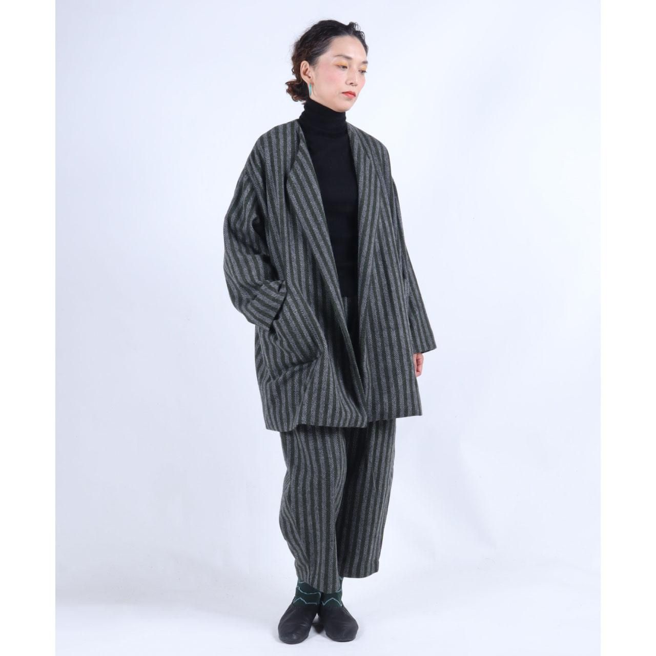 カシミール手織りウール はおり 裏地付 (ヘリンボーン グリーングレイ)