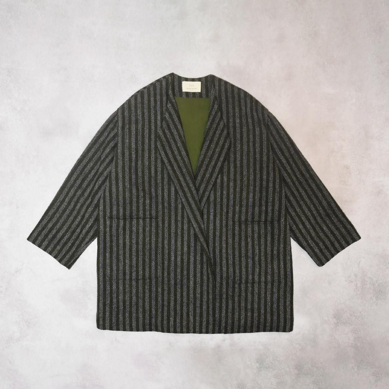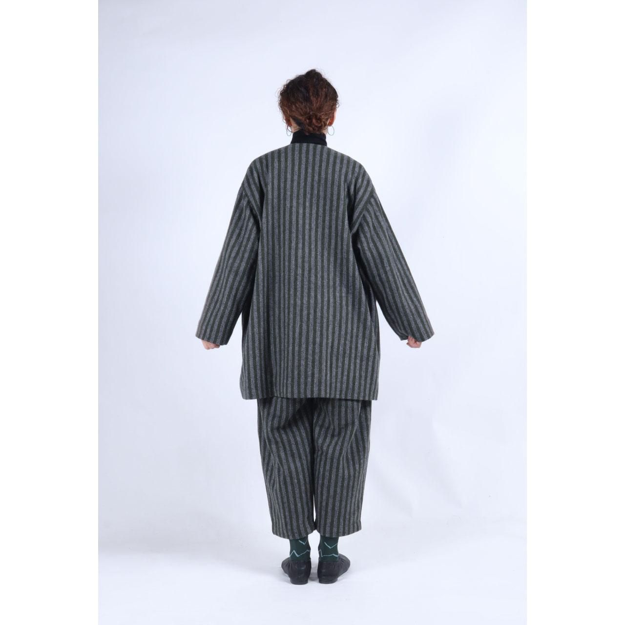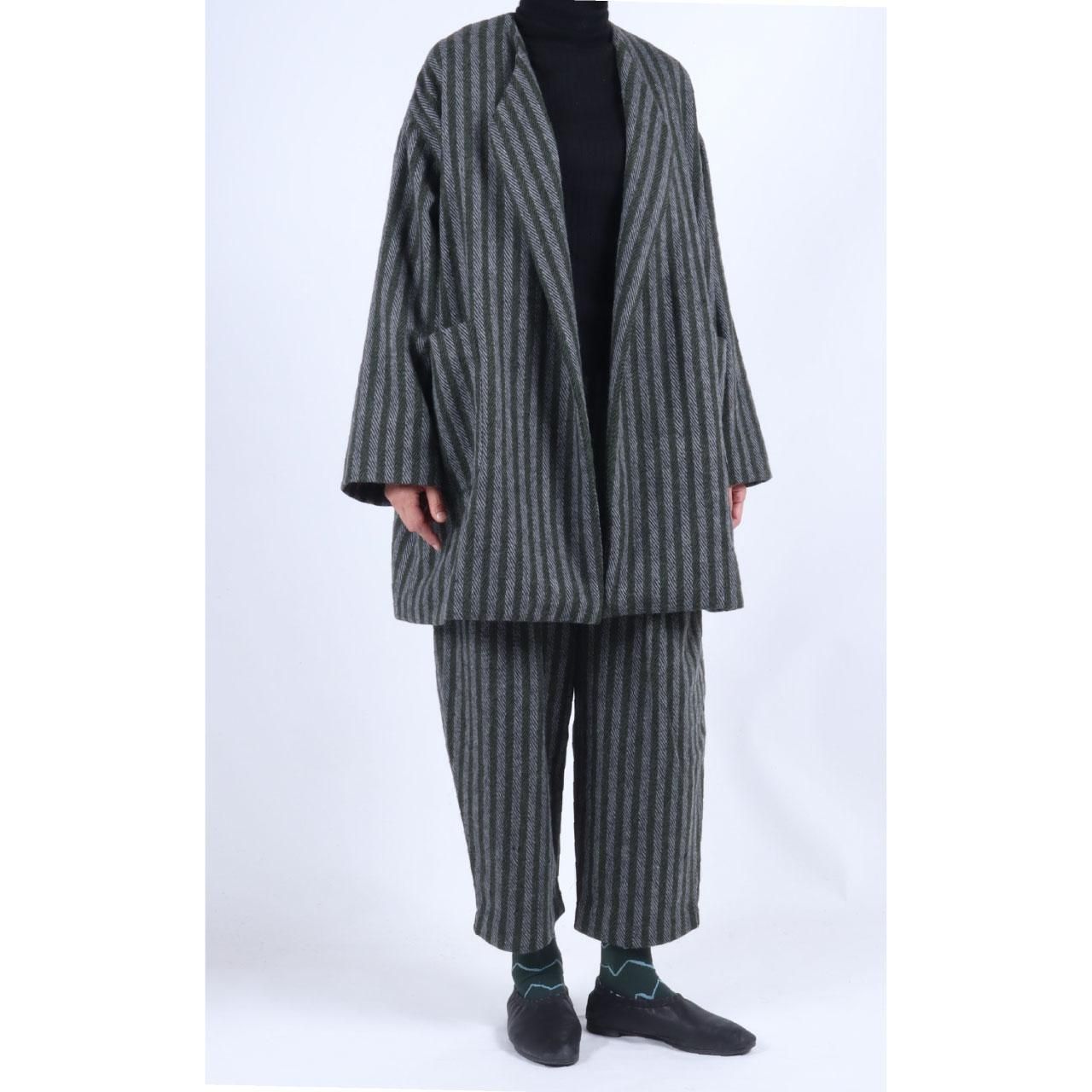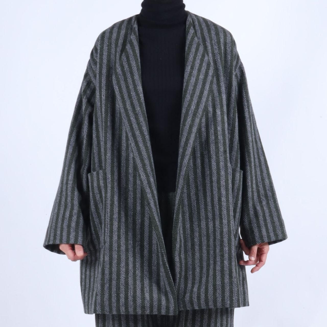 カシミール手織りウール はおり 裏地付 (ヘリンボーン グリーングレイ)