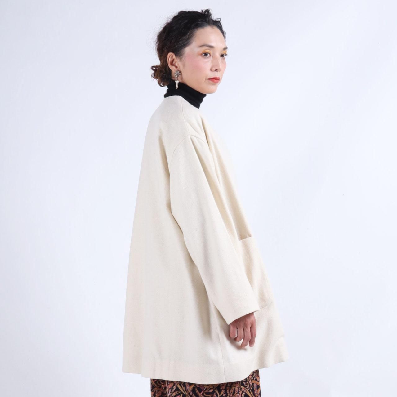 (入荷待ち/予約)カシミール手織りウール はおり 裏地付(ホワイト)