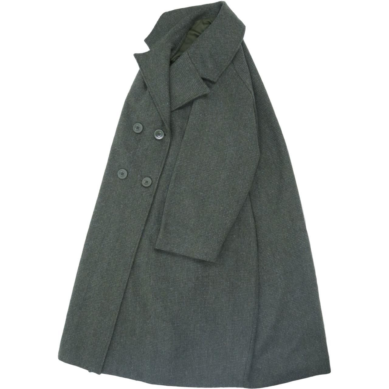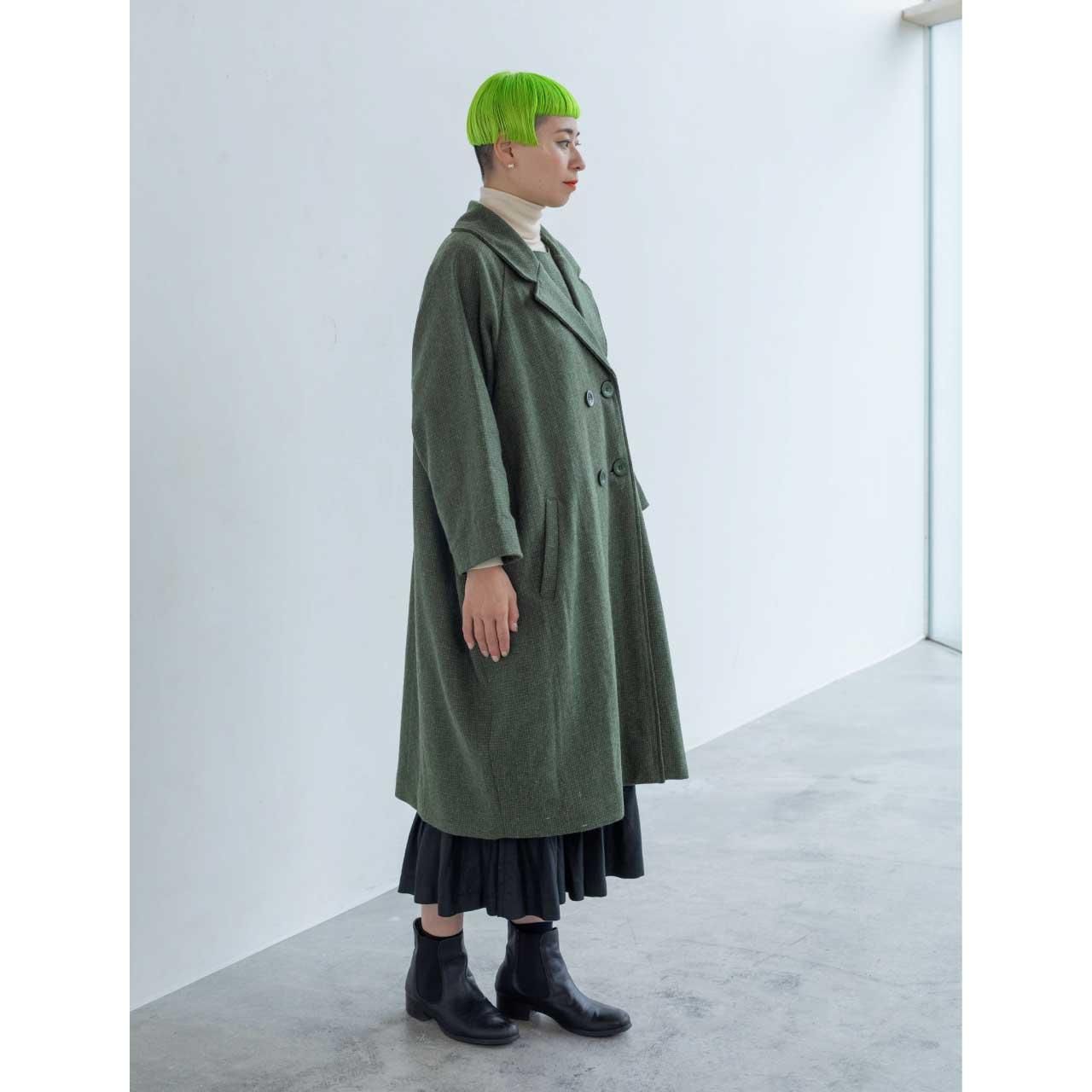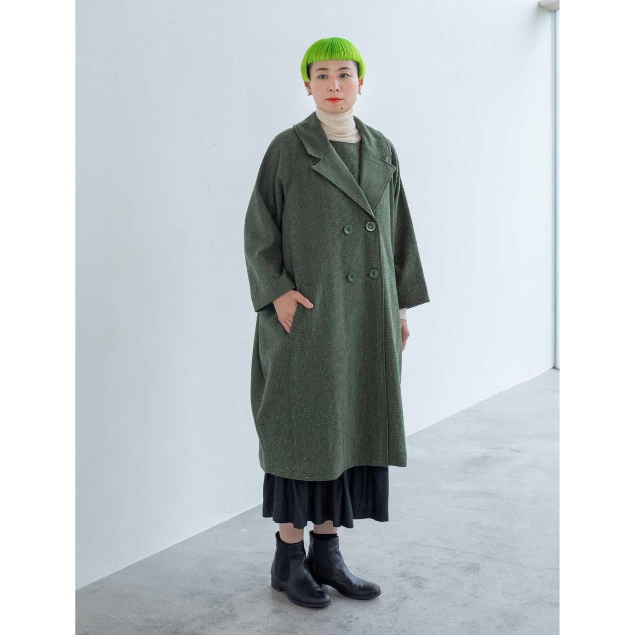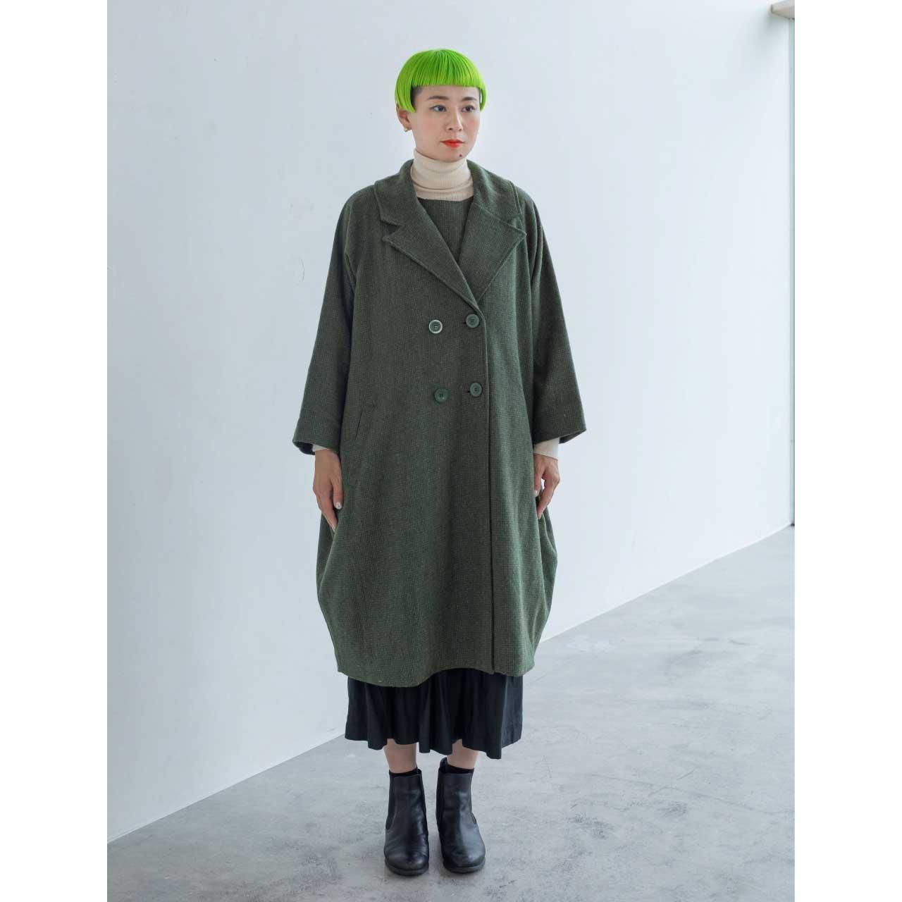 カシミール手織りウール テーラードラグランコクーンコート(グリーン)
