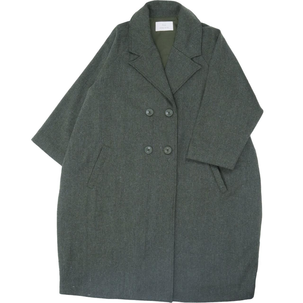 インド・カシミール地方で手織りされたメリノウールのテーラードラグランコクーンコート。