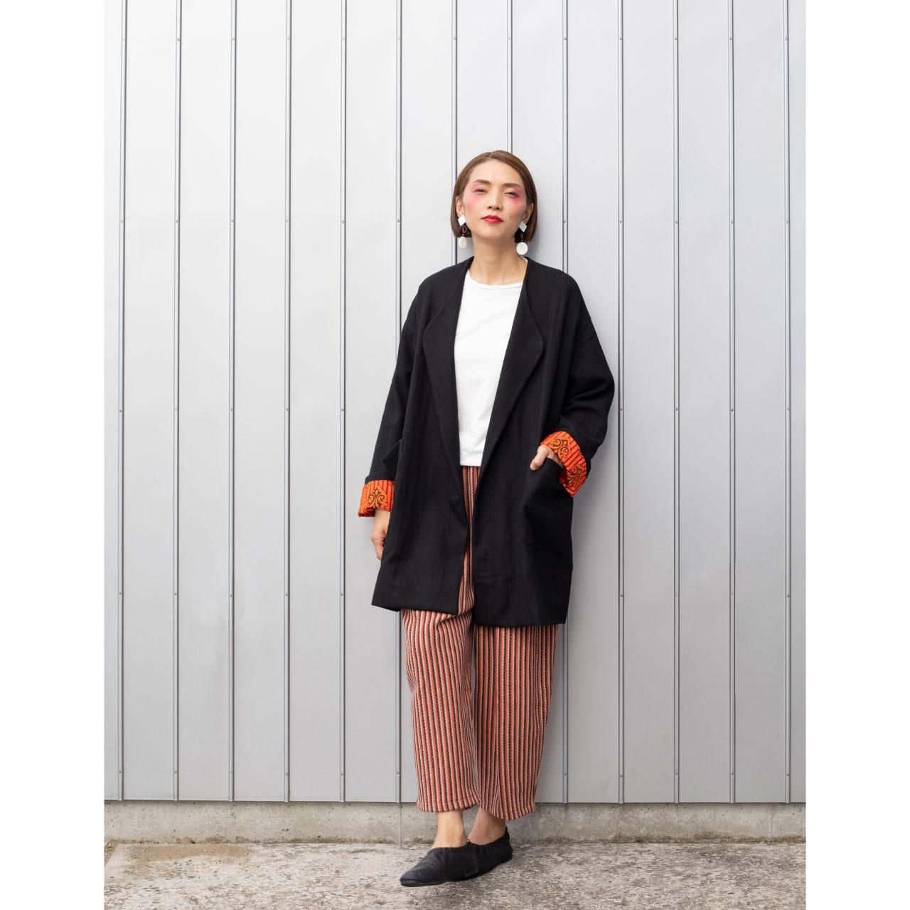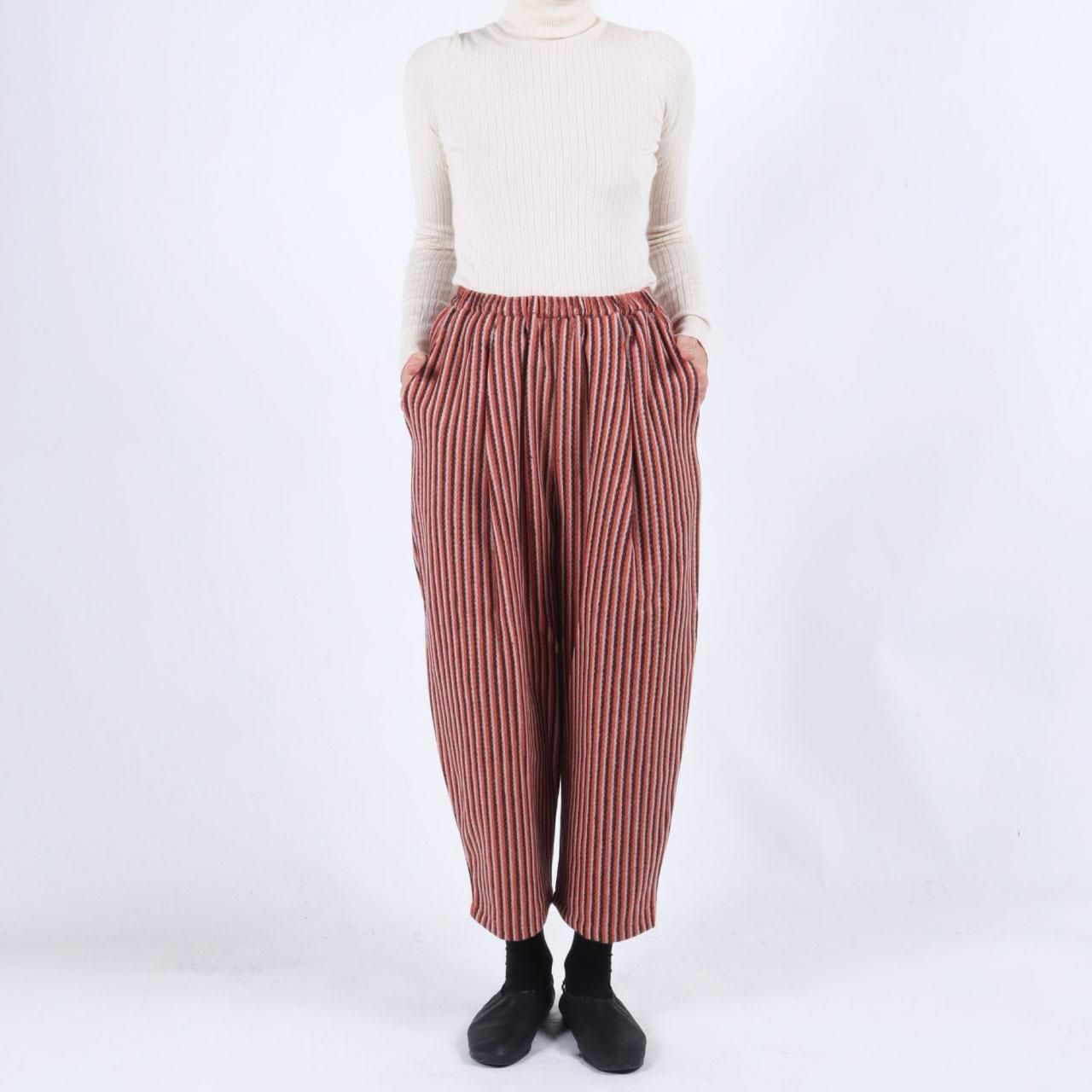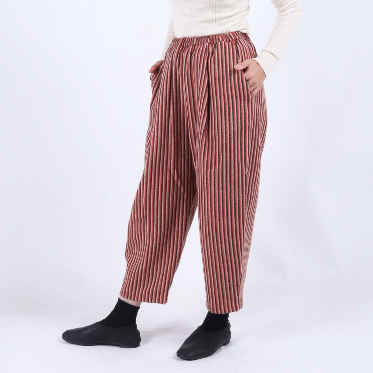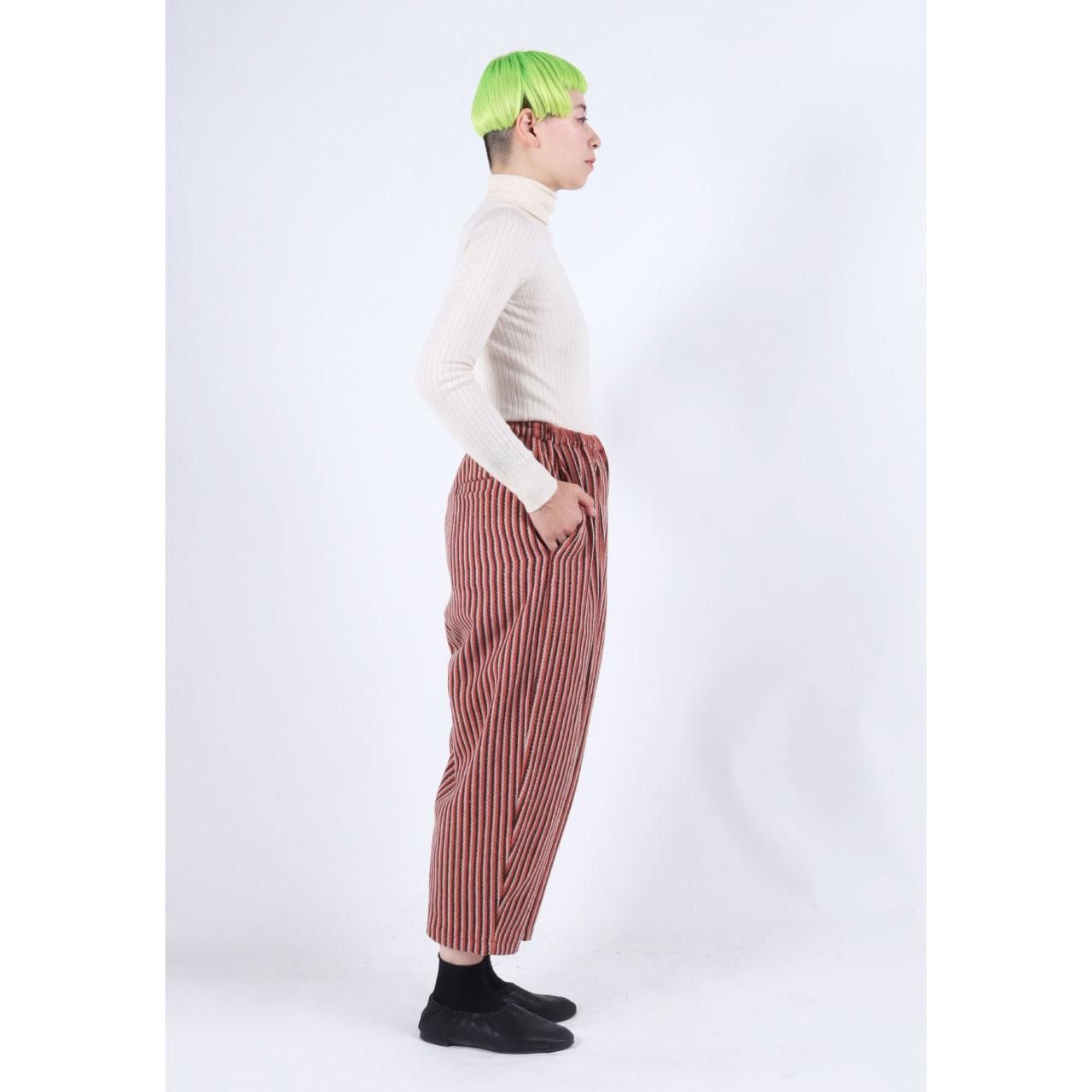 カシミール手織りウール ユニセックスパンツ(オレンジストライプ)