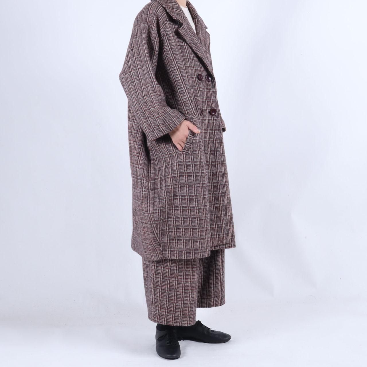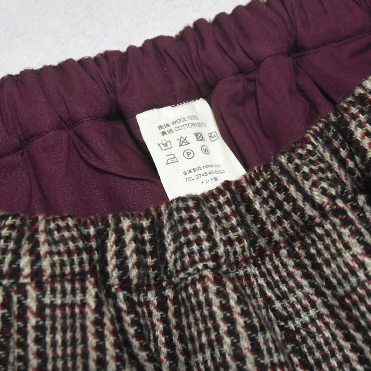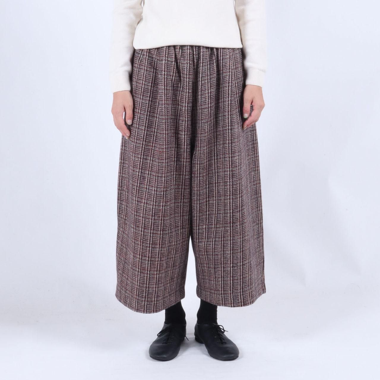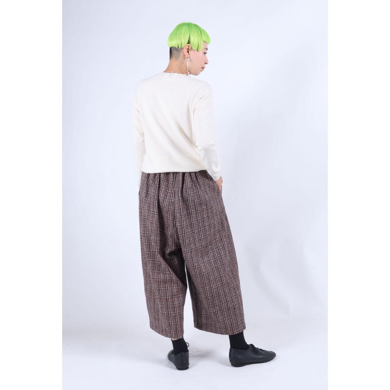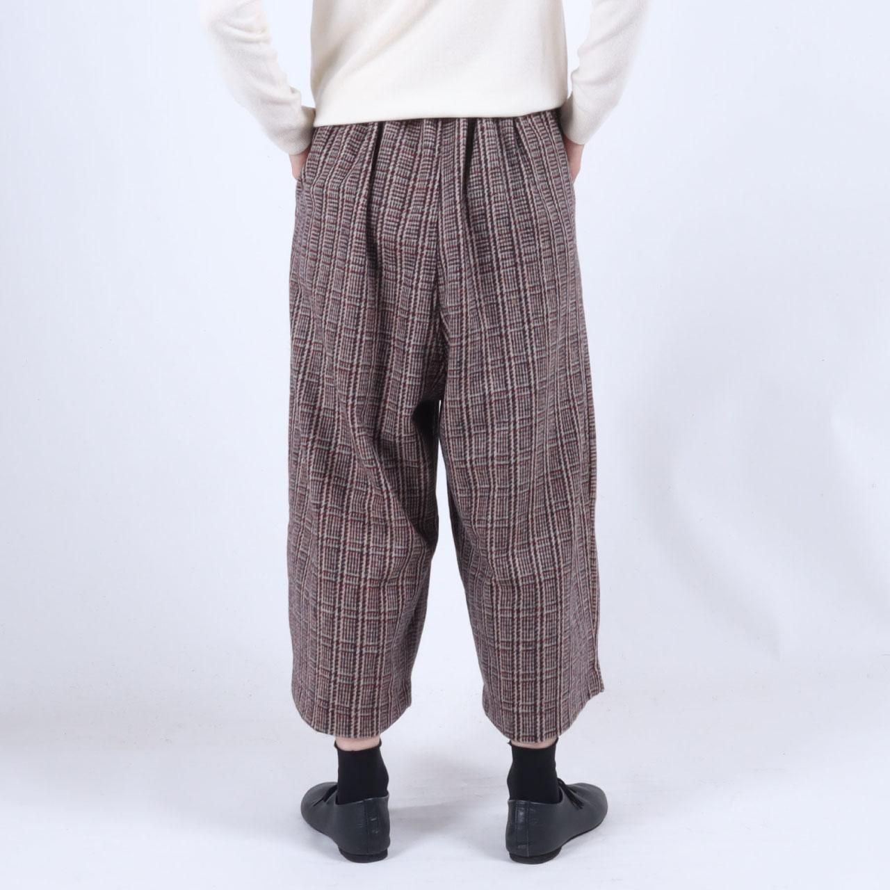 カシミール手織りウール バルーンパンツ(レッドブラウンチェック)