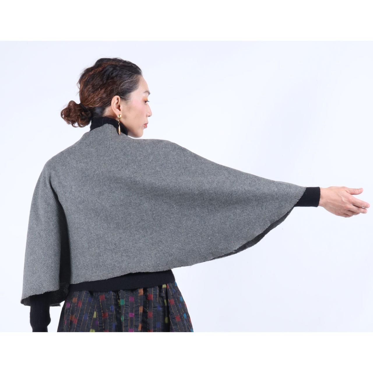 インド・カシミール地方で手織りされたメリノウールのケープ。