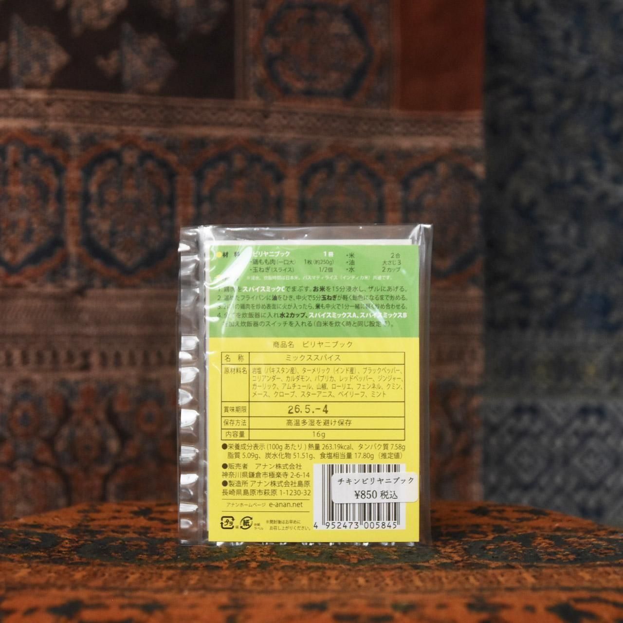 〈原料〉岩塩(パキスタン産)、ターメリック(インド産)、ブラックペッパー、コリアンダー、カルダモン、パプリカ、レッドペッパー、ジンジャー、ガーリック、アムチュール、山椒、ローリエ、フェンネル、クミン、メース、クローブ、スターアニス、ベイリーフ、ミント