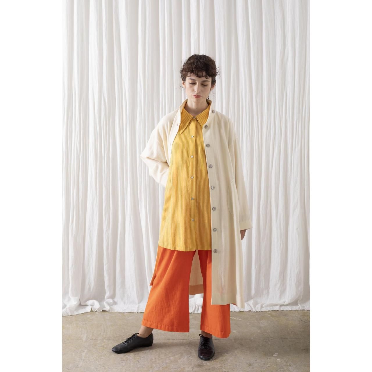 インド・カシミール地方で手織りされたメリノウールのロングジャケット。