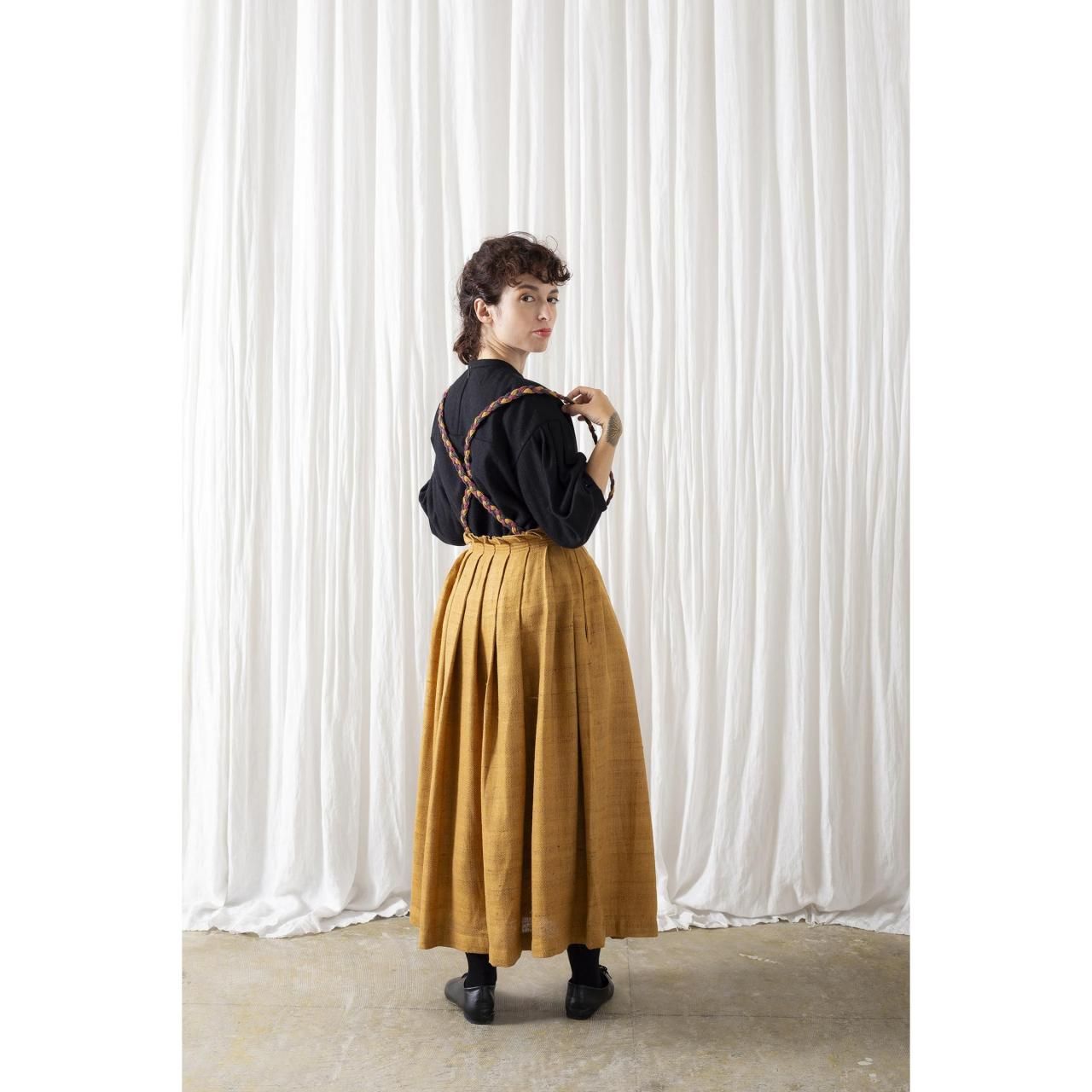 インドの手紡ぎ・手織りによるカディ生地を使用したサスペンダースカート。