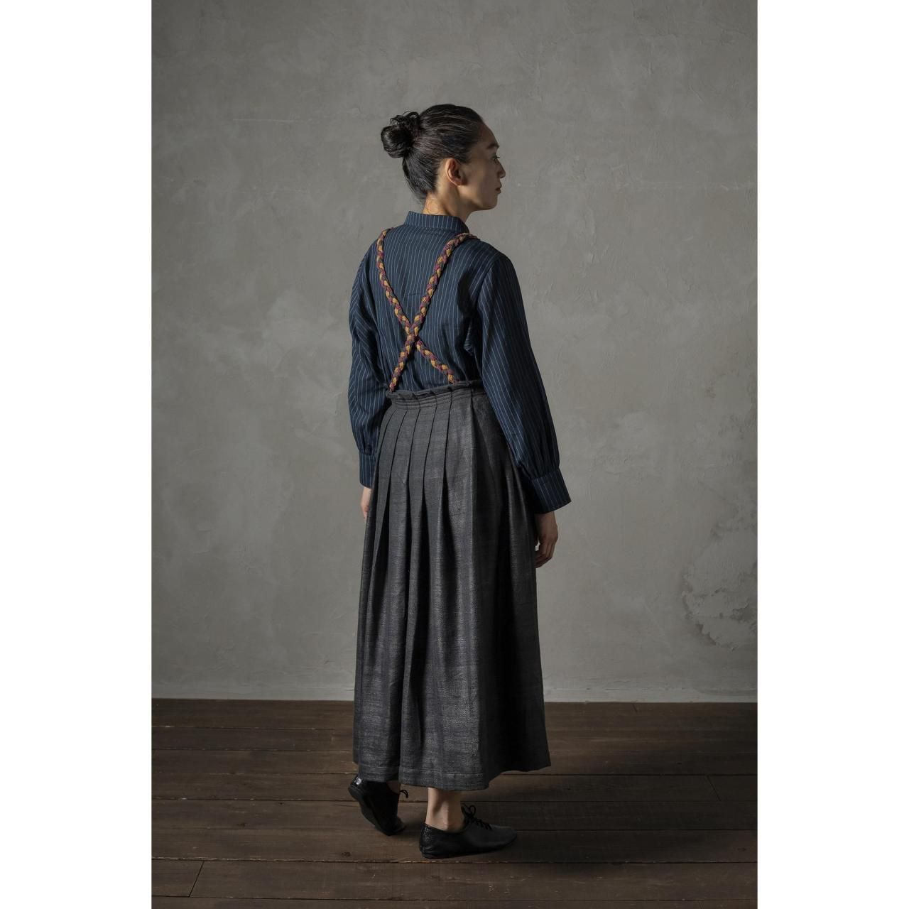 インドの手紡ぎ・手織りによるカディ生地を使用したサスペンダースカート。