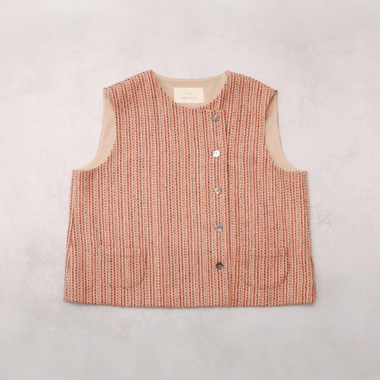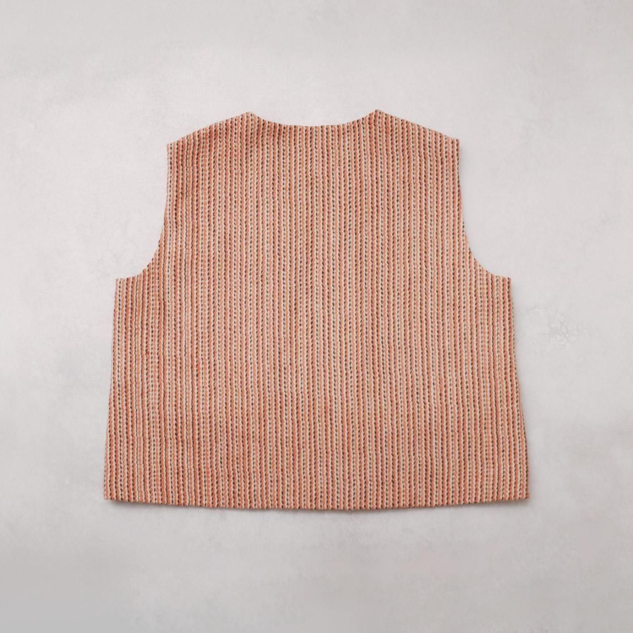 カシミール手織ウール レディースボタンベスト(オレンジストライプ)