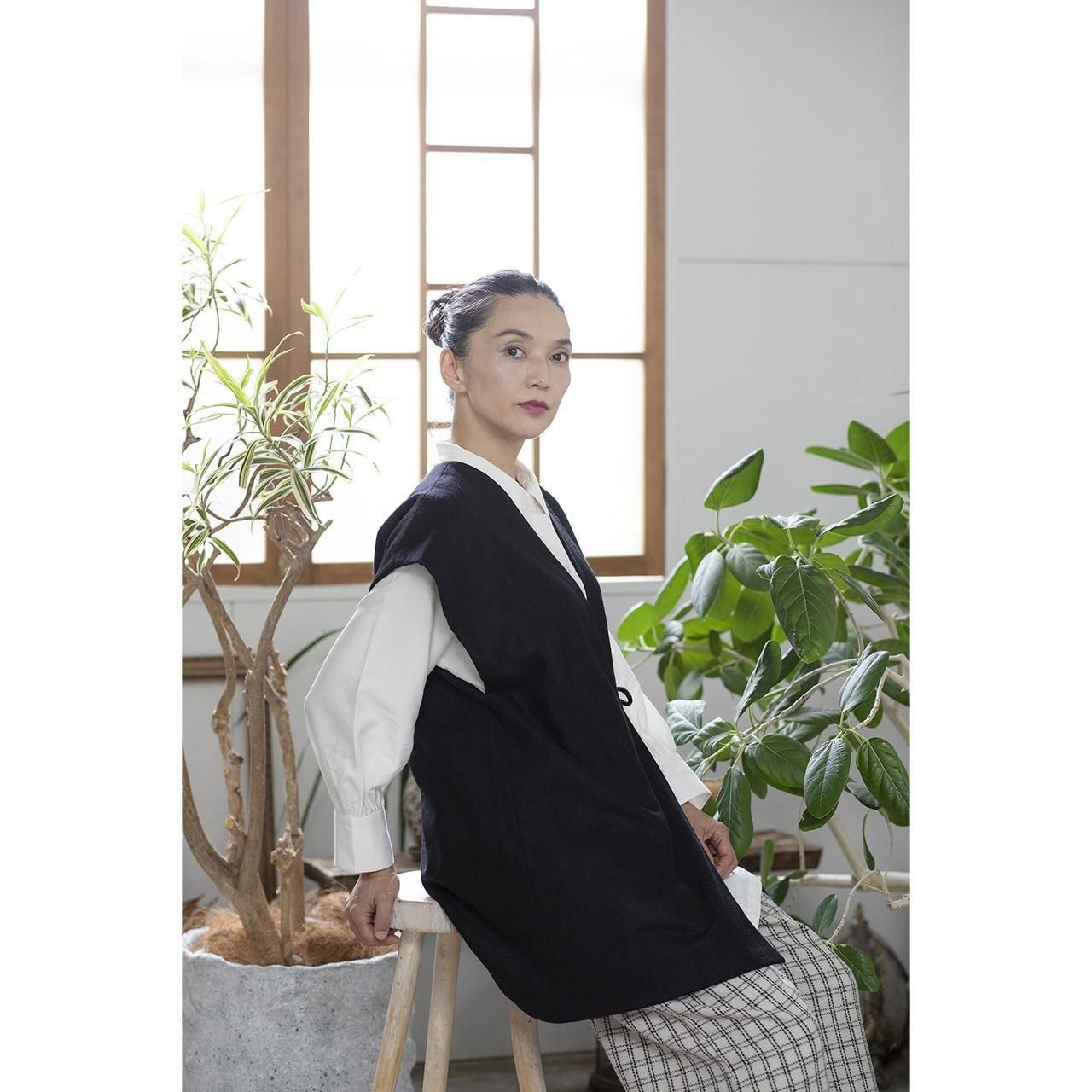 カシミール手織ウール ラップベスト(ブラック)