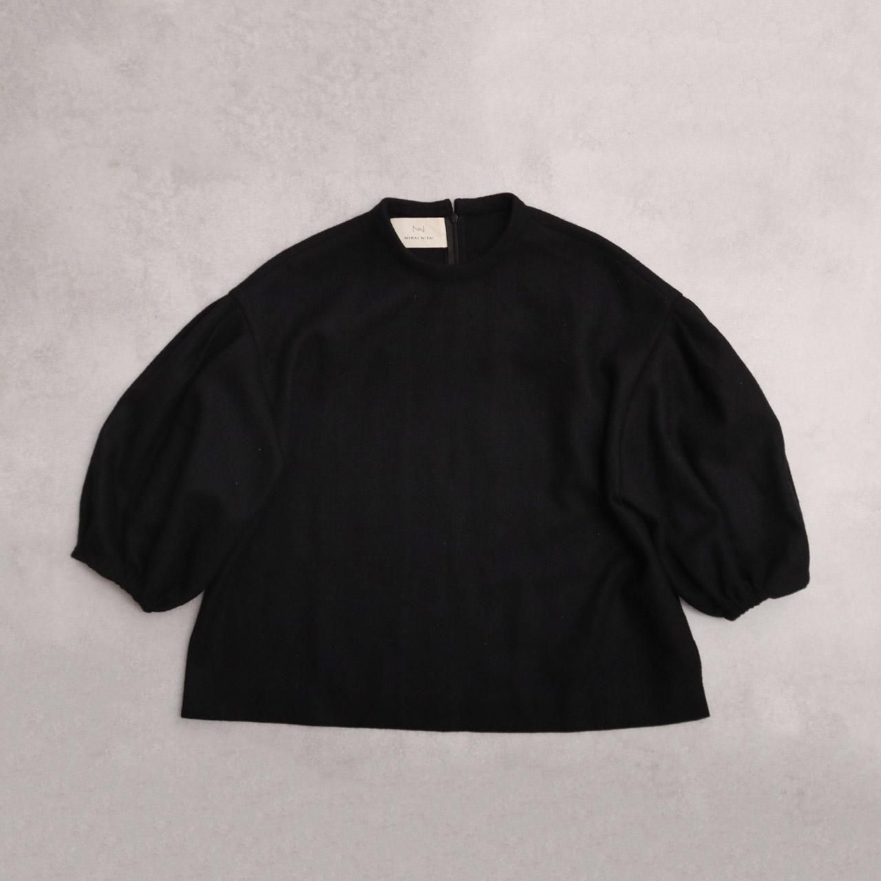 カシミール手織りウール バルーンスリーブトップ(ブラック)