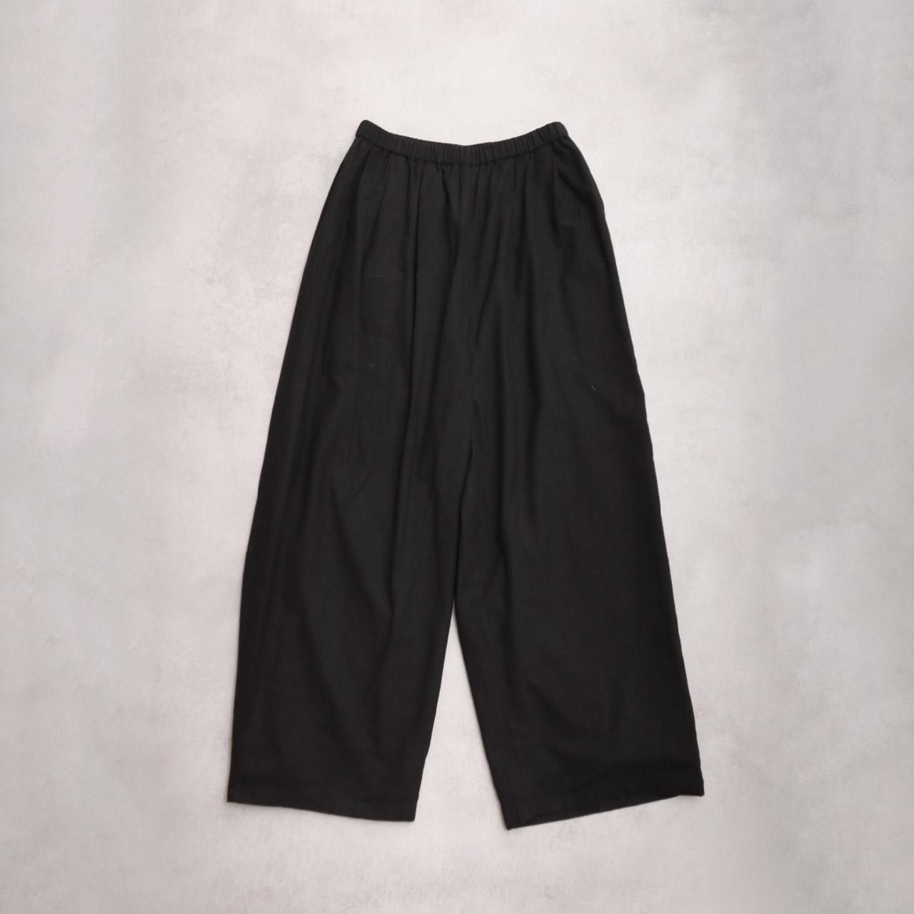 ウエストにはゴムを使用しており、着心地抜群。股下が少し長めでゆったりとしたシルエットが特徴です。