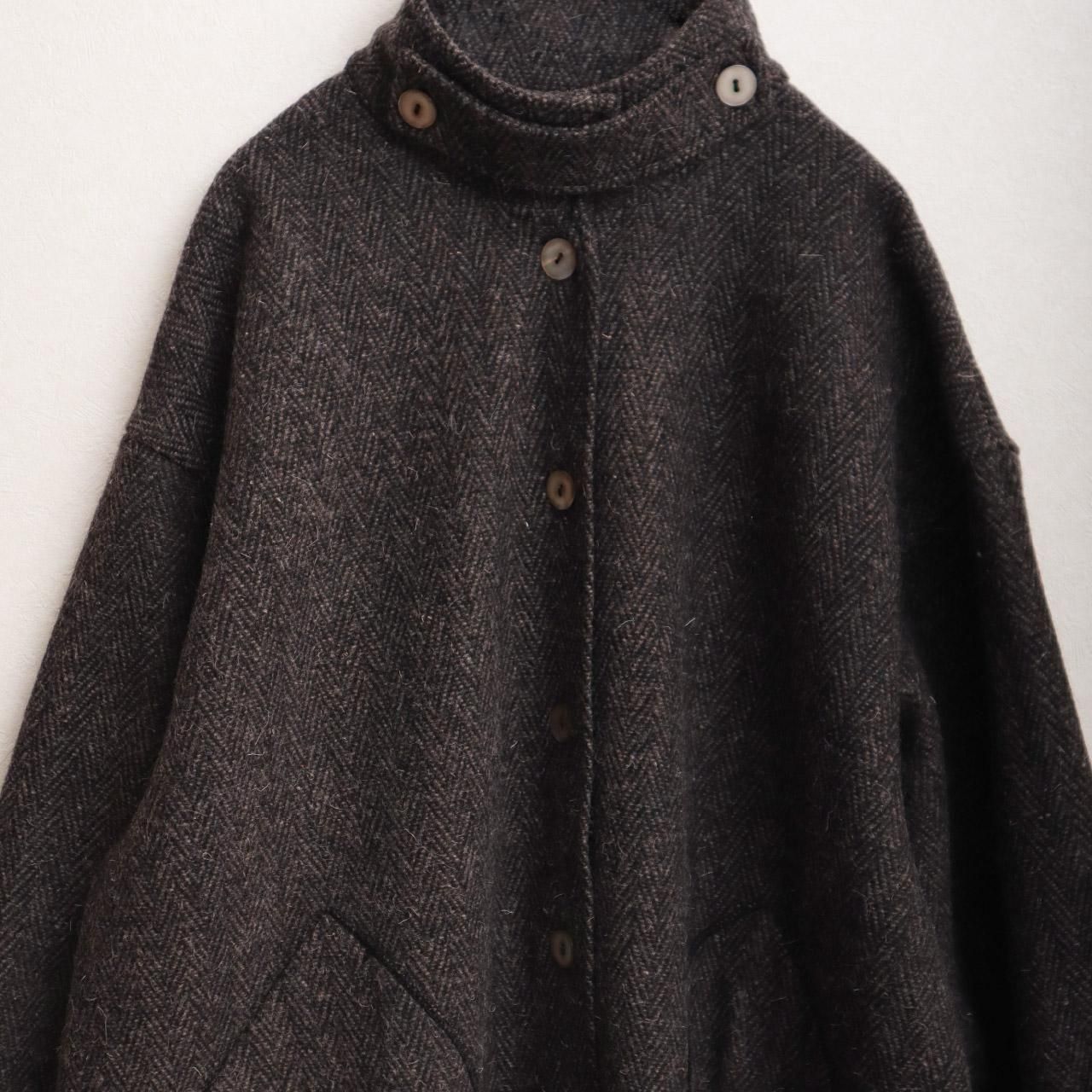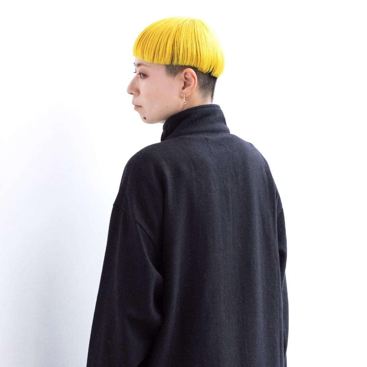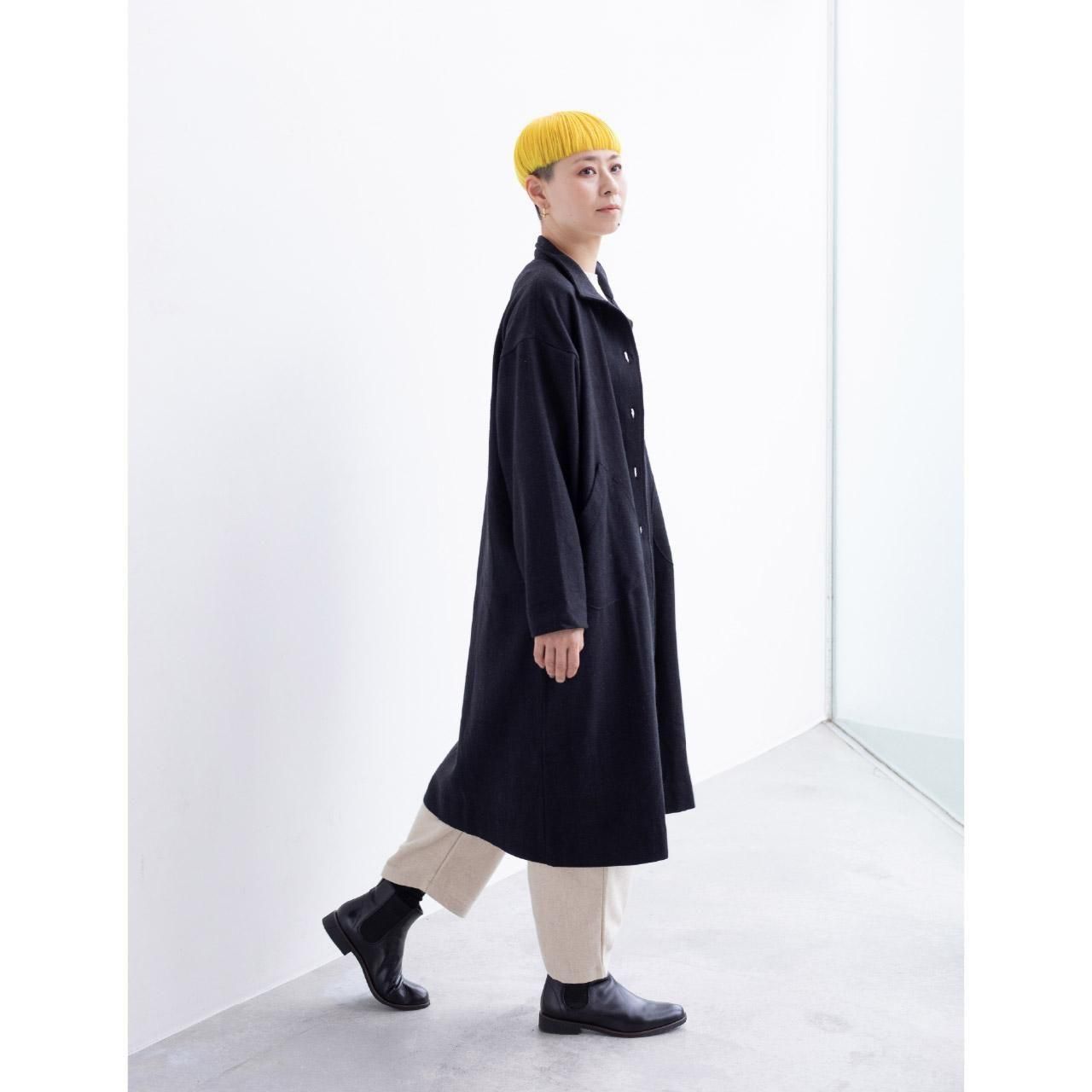 首元のベルト部分は外して、襟を倒した形や、前開きでの着用など、着方によって印象が変わる万能なジャケットです。