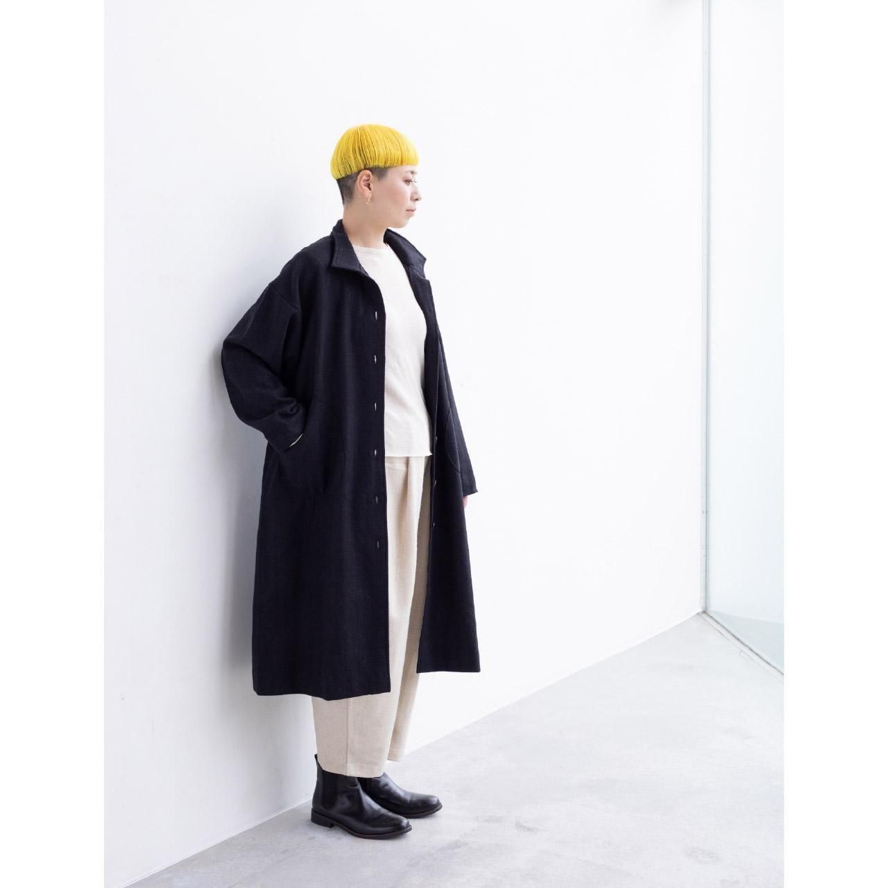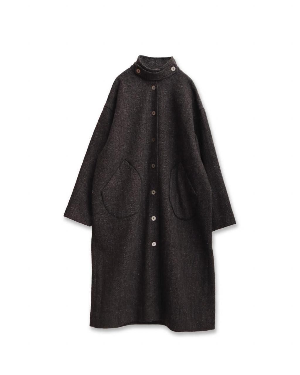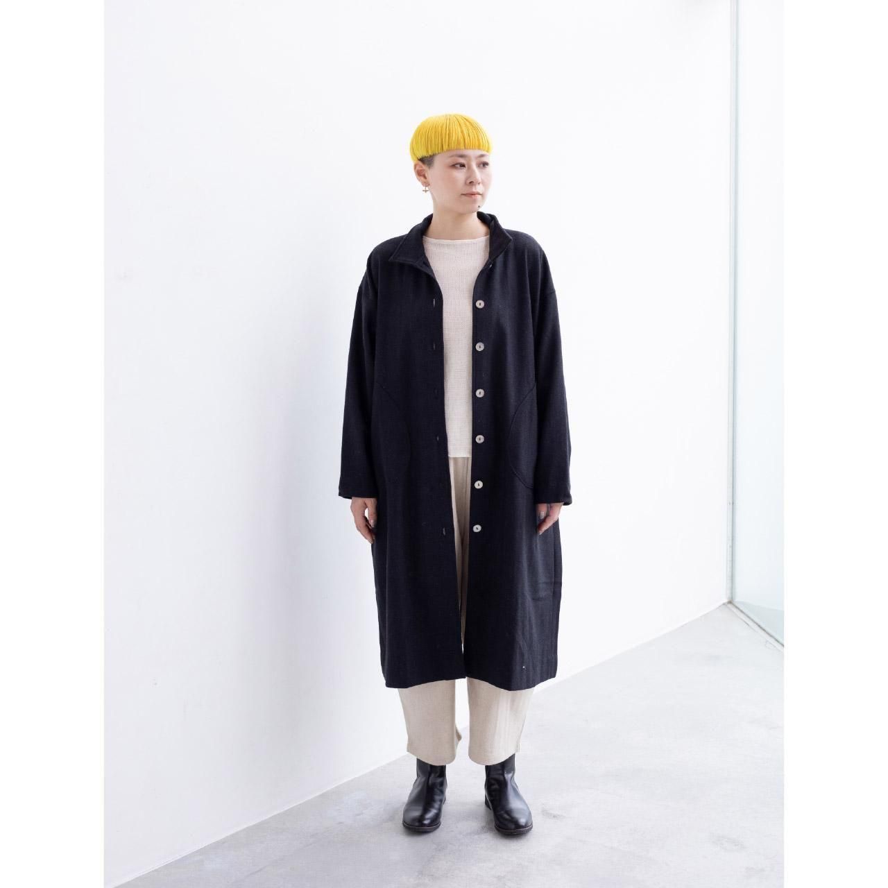 インド・カシミール地方で手織りされたメリノウールのロングジャケット。