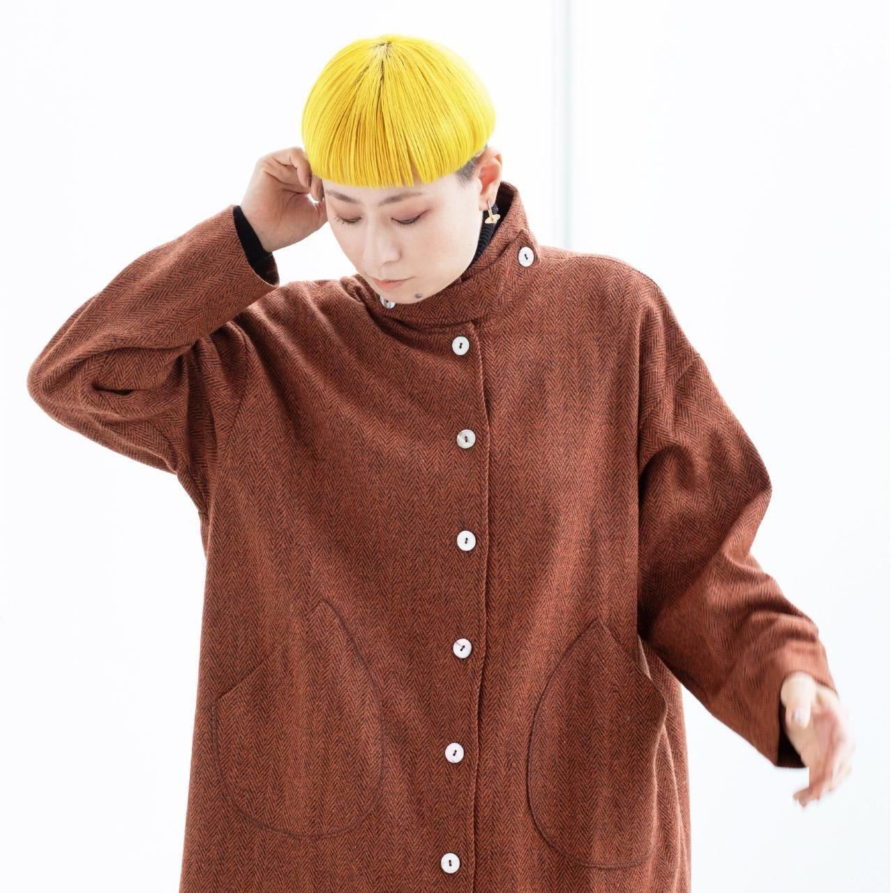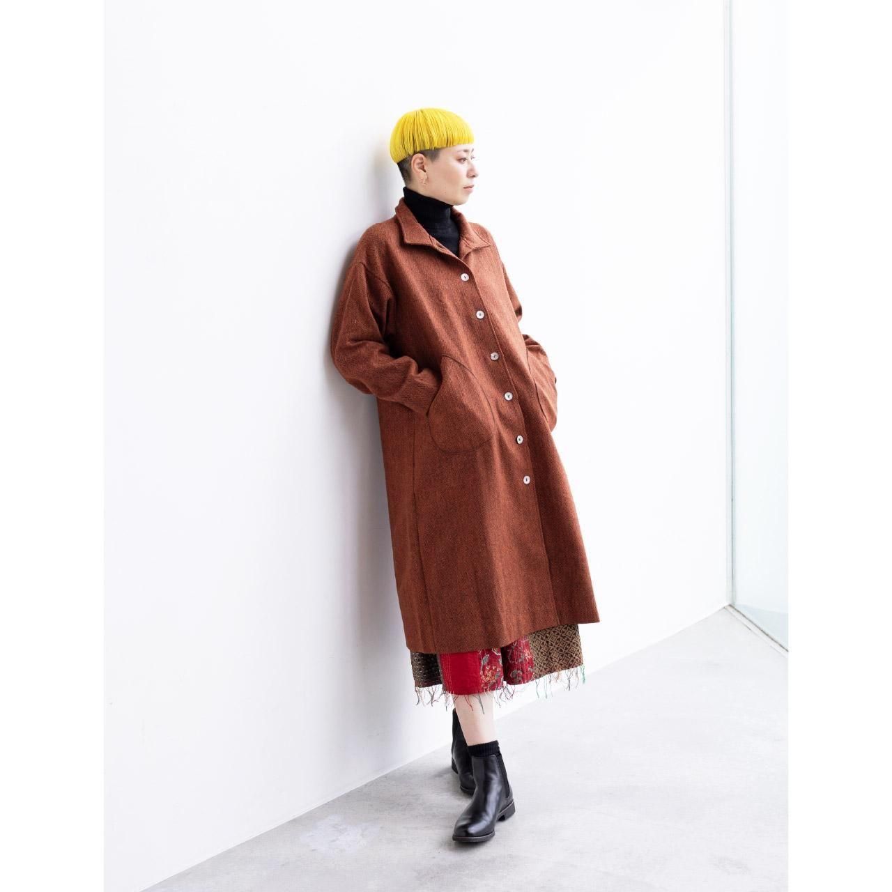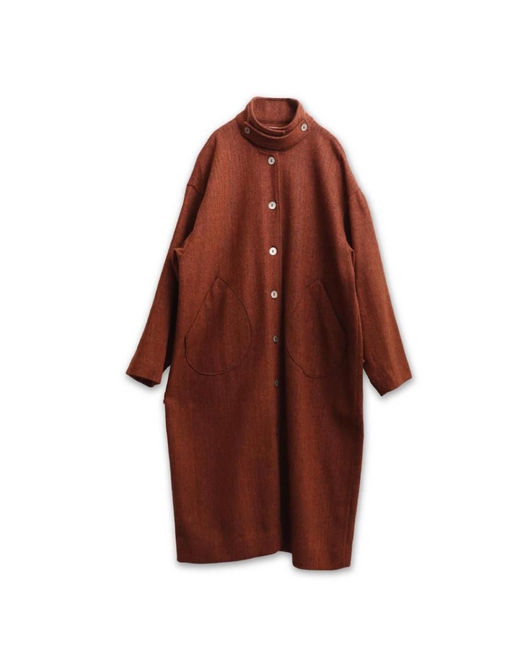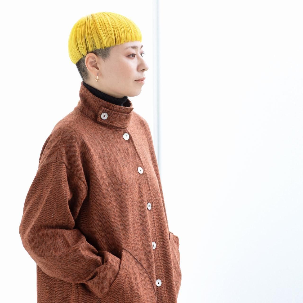カシミール手織りウール ロングジャケット(オレンジヘリンボーン)
