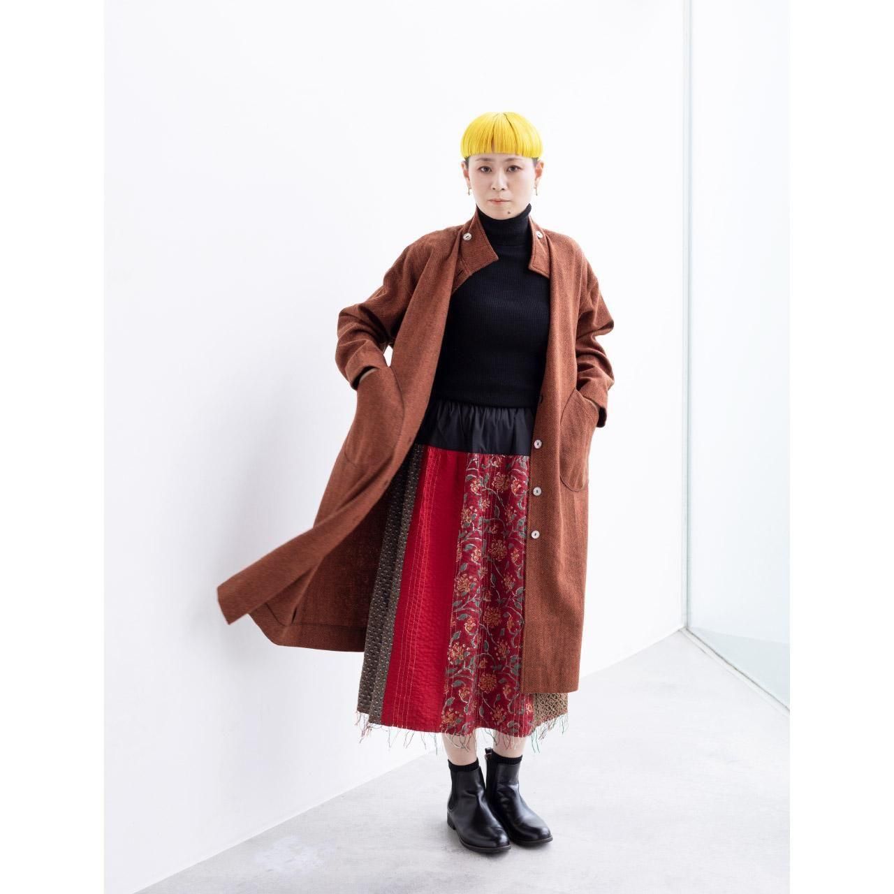 インド・カシミール地方で手織りされたメリノウールのロングジャケット。