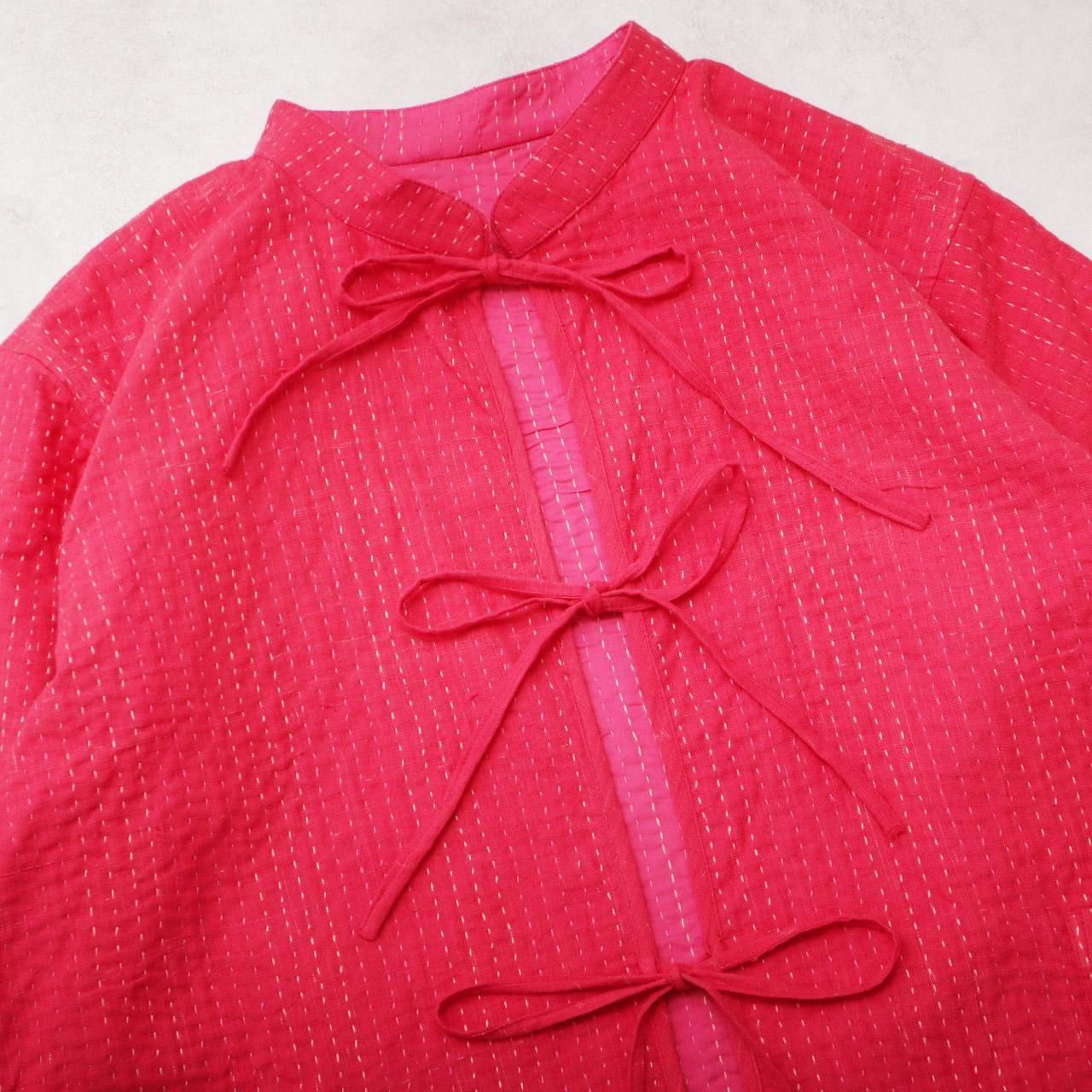 ブッダガヤ 刺し子 リボンジャケット(パッションピンク)