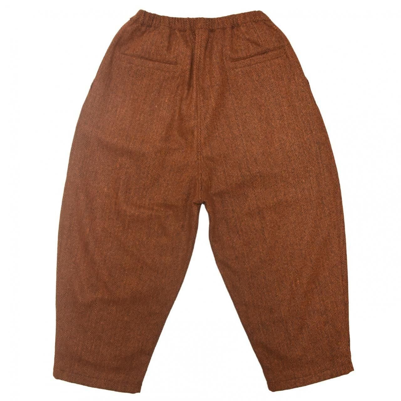 カシミール手織りウール ユニセックスパンツ (オレンジヘリンボーン)